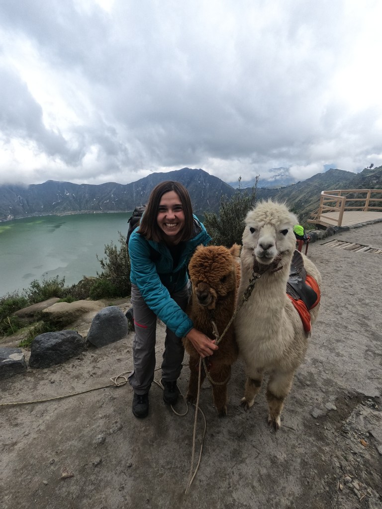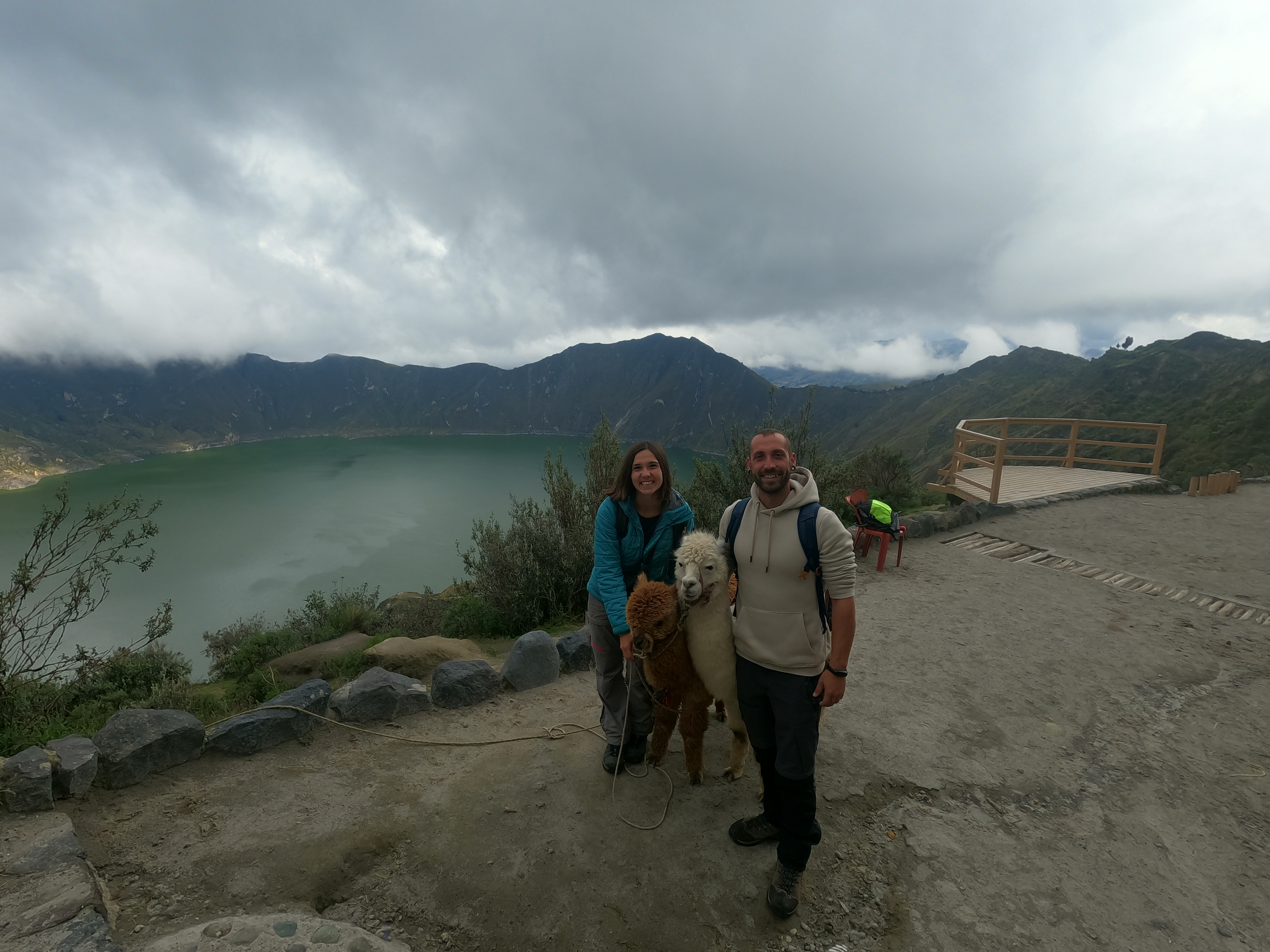 Al llegar a Quilotoa, a 3.915 msnm, con el tiempo nublado, aunque se estaba bien… menos para Aida, que a 13 grados es estar a punto de morirse😂.