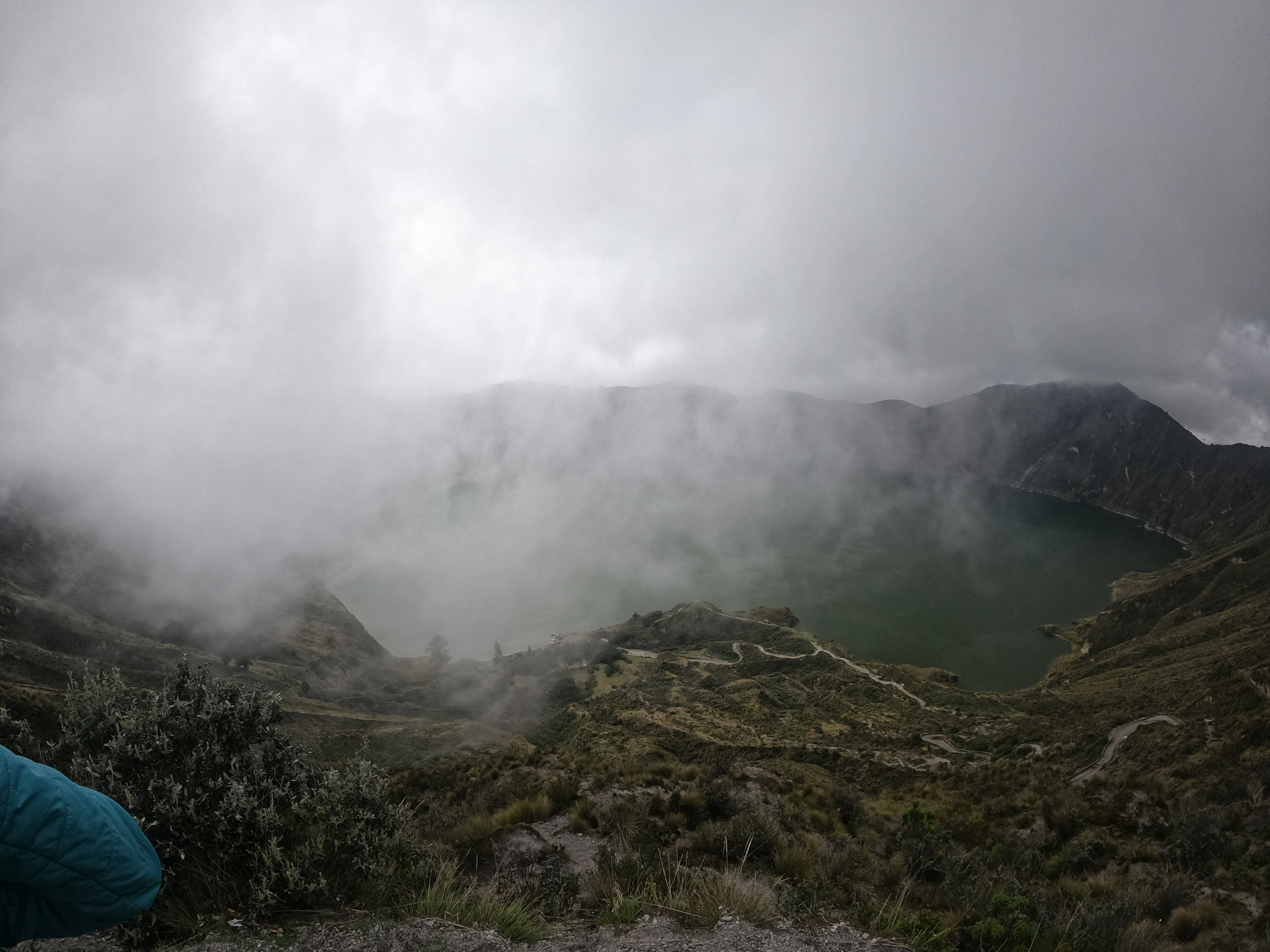 Tras la amistad con las alpacas, seguimos el sendero y nos hicimos más fotos, pero unas horas después de estar mirando el cráter, la laguna y todo lo que le rodea, se giró el tiempo y entro la neblina, de manera que llegó un punto que no de veía nada, así que aprovechamos y fuimos a comer.