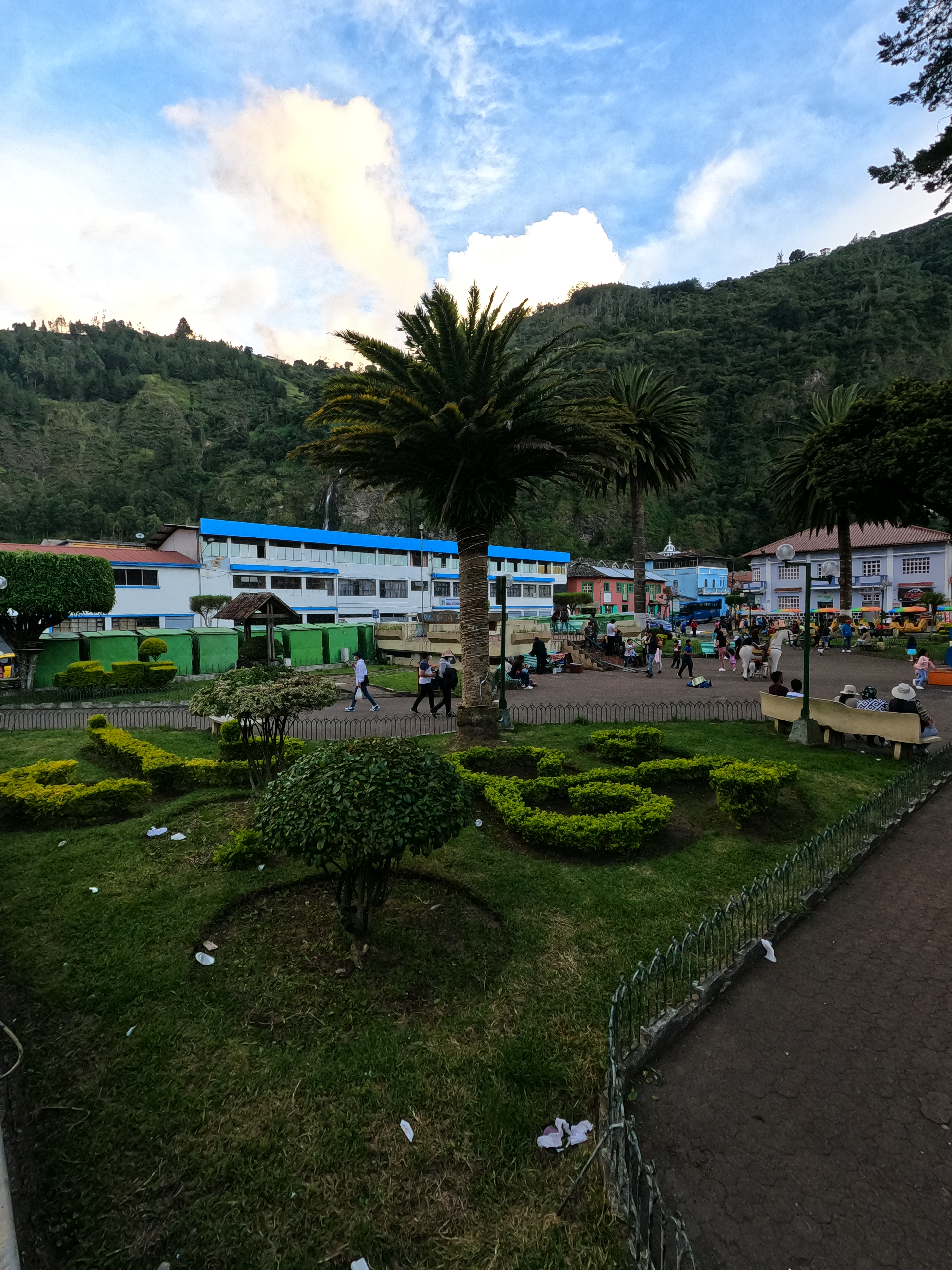 Dejamos el hostel, desayunamos en la pizzería California, vídeollamamos y directos a la terminal de buses de Latacunga. Subimos al bus de Latacunga hasta la terminal de Ambato, en Ambato un taxi por 2 dólares hasta la terminal las Américas y, en esa misma terminal, autobús hasta Baños. Todo esto nos llevó desde las 12 hasta las 15.